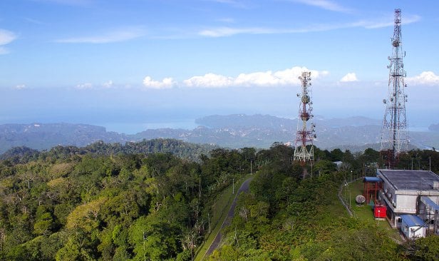 At the center of Langkawi’s mountainous landscape sits Gunung Raya, the tallest peak at 881 meters (2,890 feet) high. Visitors can access the mountain’s summit via road or by climbing 4,287 steep steps, called Tangga Helang Seribu Kenangan, or Thousand Memory Eagle Stairs. Climbers are best positioned to experience Gunung Raya’s impenetrable rainforest habitat, formed atop the 220-200-million-year-old granite foundation.