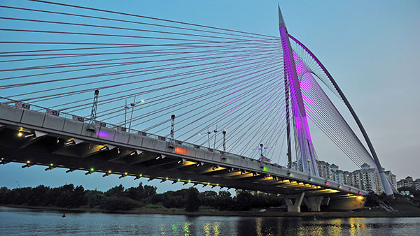 Spread acrodd Seri Wawasan Bridge is one of the most prominent bridges in Putrajaya, known for its futuristic style of architecture. It is marvelously designed as a sailing ship and looks stunning at night with a vibrant display of colors. Seri Wawasan Bridge, also known as bridge No. 9, is a trademark of the city of Putrajaya and represents the uniqueness of the place. The bridge is visible even from afar and the ideal time to visit it is during the sunset or night hours. The bridge also makes for great photographs and offers a fantastic view of the lake with the city in the backdrop.